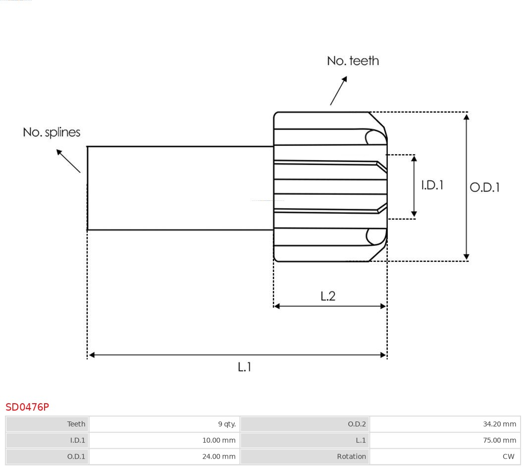 AS-PL SD0476P Γρανάζια σφόνδυλου αδρανείας, εκκινητής