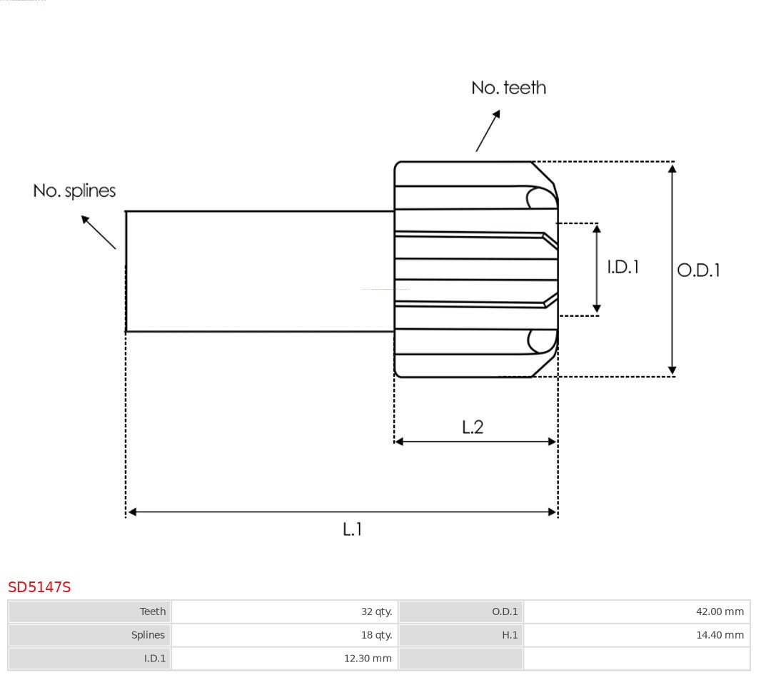 AS-PL SD5147S Γρανάζια σφόνδυλου αδρανείας, εκκινητής