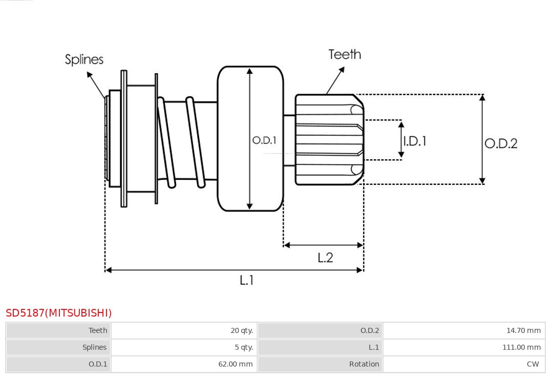 AS-PL SD5187(MITSUBISHI) Γρανάζια σφόνδυλου αδρανείας, εκκινητής